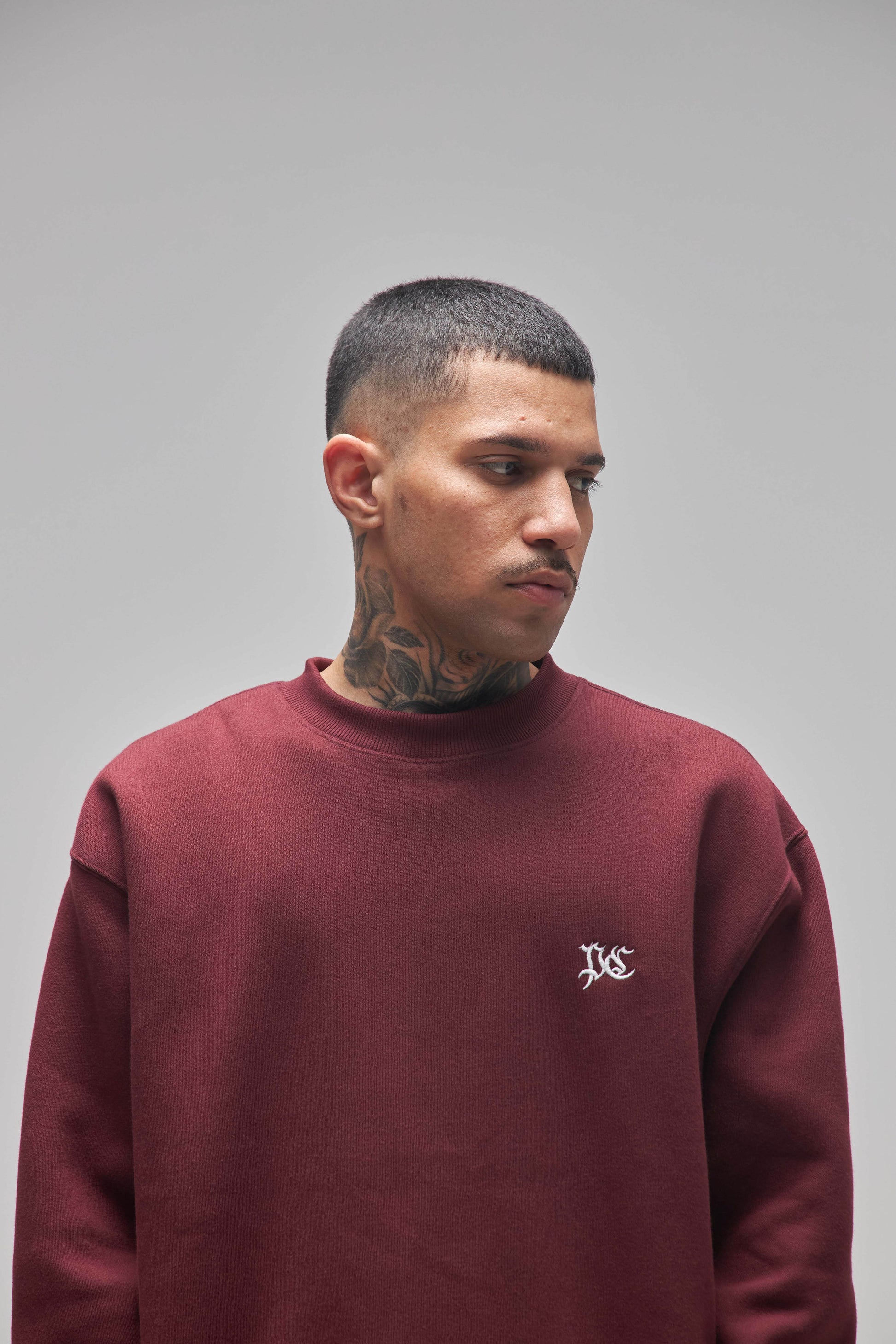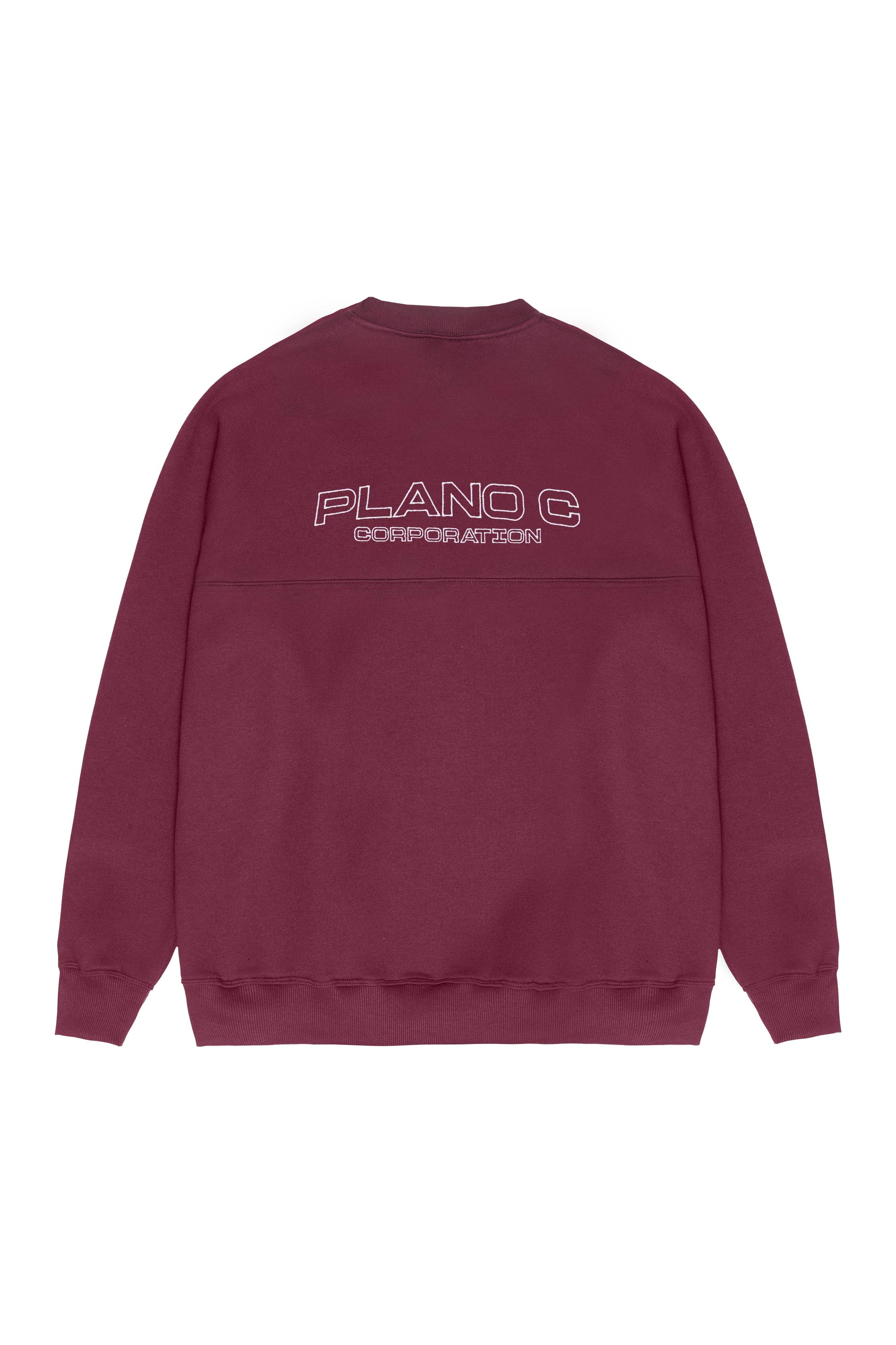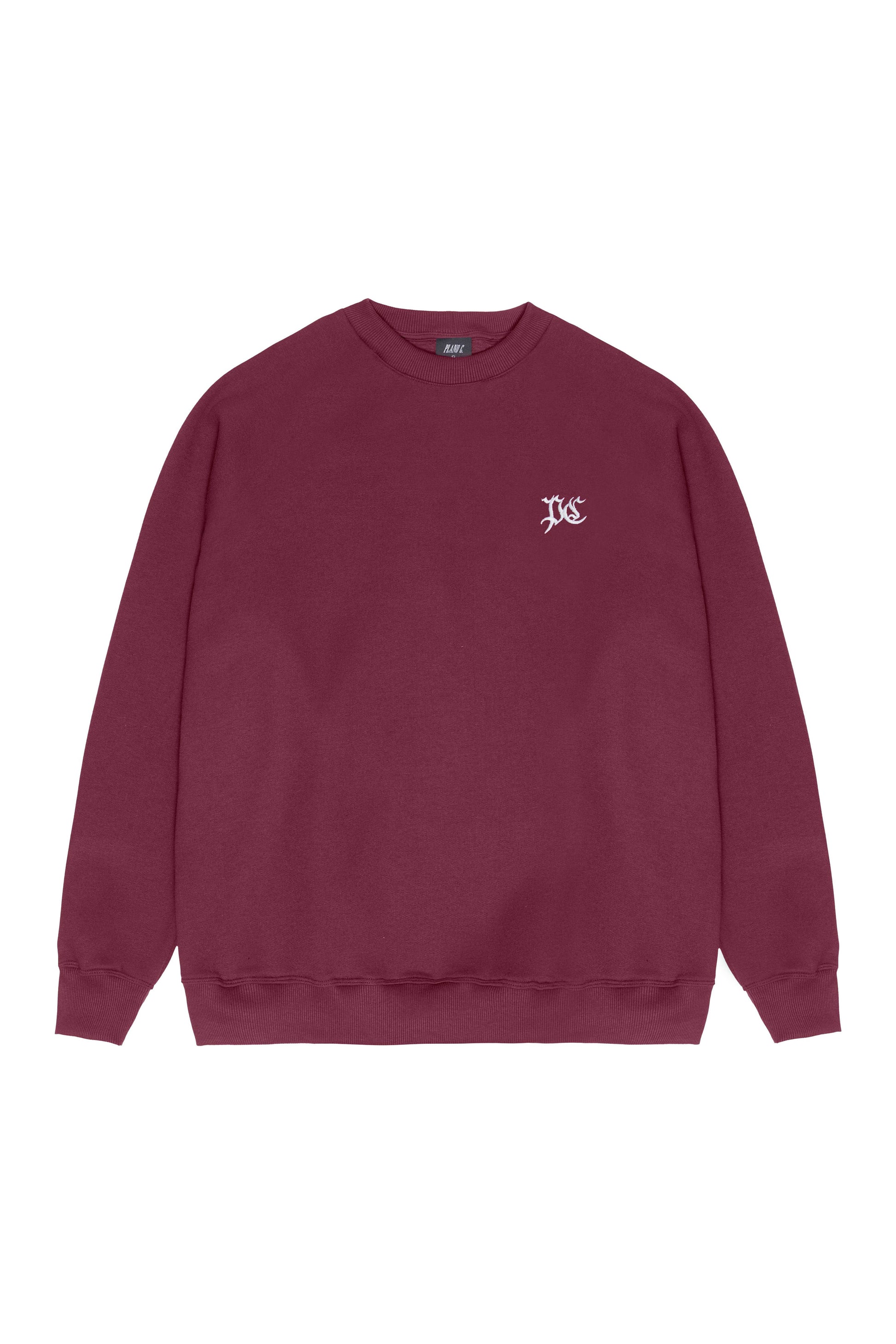 Moletom Crewneck, a parte frontal traz bordado, enquanto as costas se destacam pelo bordado em alto relevo, posicionado acima de um recorte horizontal que adiciona estrutura ao design da peça.