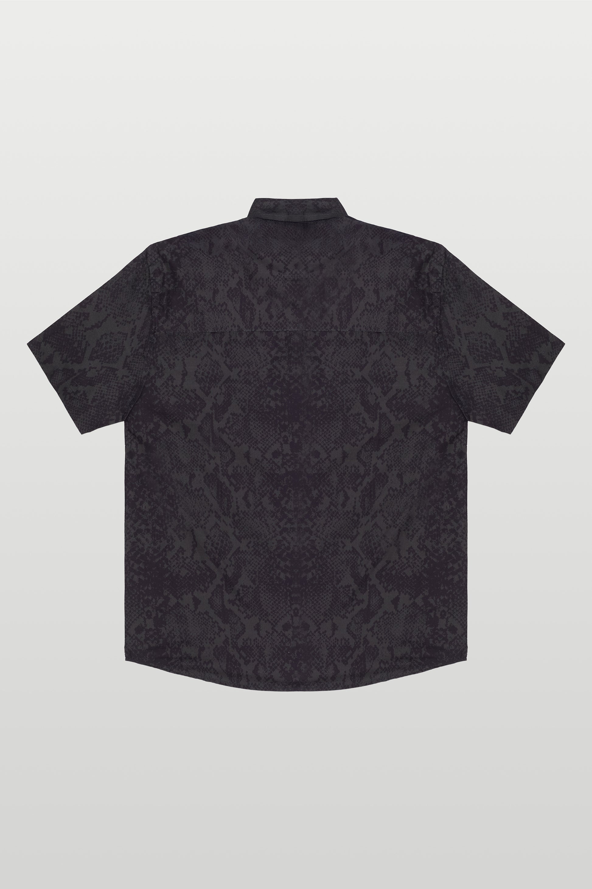 Possui modelagem reta, gola estruturada com pé de gola entretelado e botões tingidos no tom da peça, garantindo harmonia no acabamento. As mangas curtas contam com bainha dupla e pesponto fino, proporcionando caimento limpo e confortável.