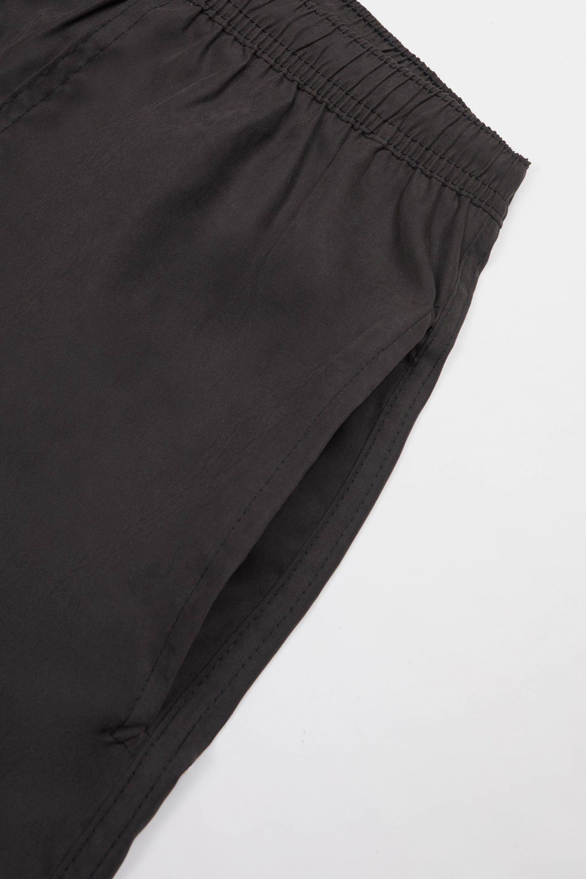 Modelagem regular com cós elástico e cadarço personalizado, bolsos frontais e traseiro com pesponto reforçado e acabamento limpo na barra.