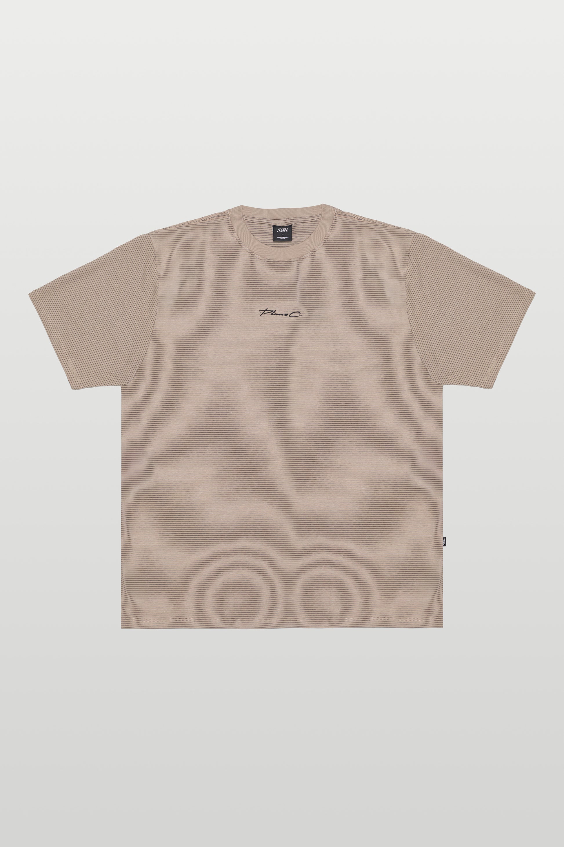 Apresenta gola careca em ribana 2x1, reforma de ombro a ombro e acabamentos pespontados em duas agulhas, que garantem resistência e excelente acabamento. O diferencial está no bordado centralizado no peito, com a assinatura Plano C em estilo minimalista e sofisticado.