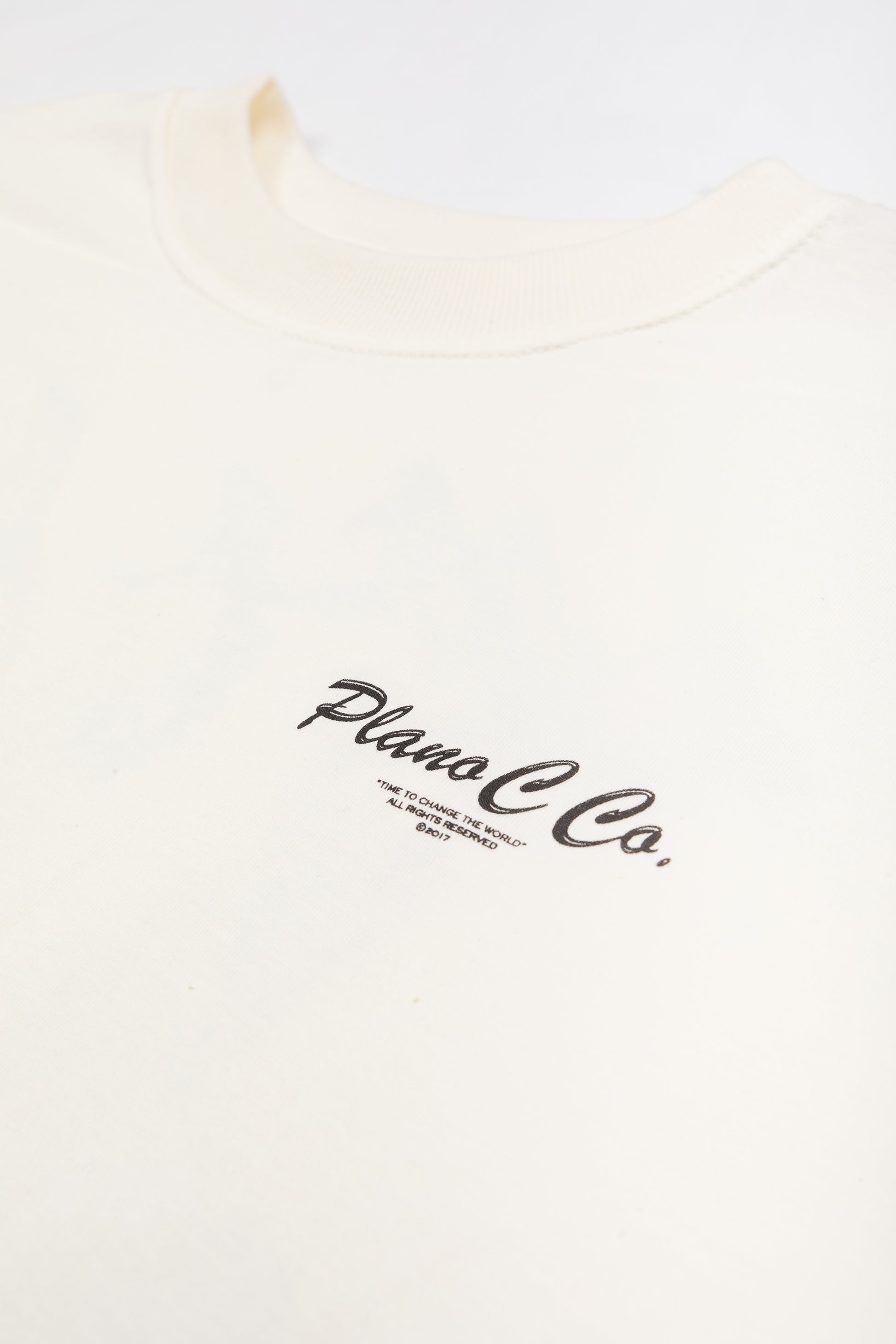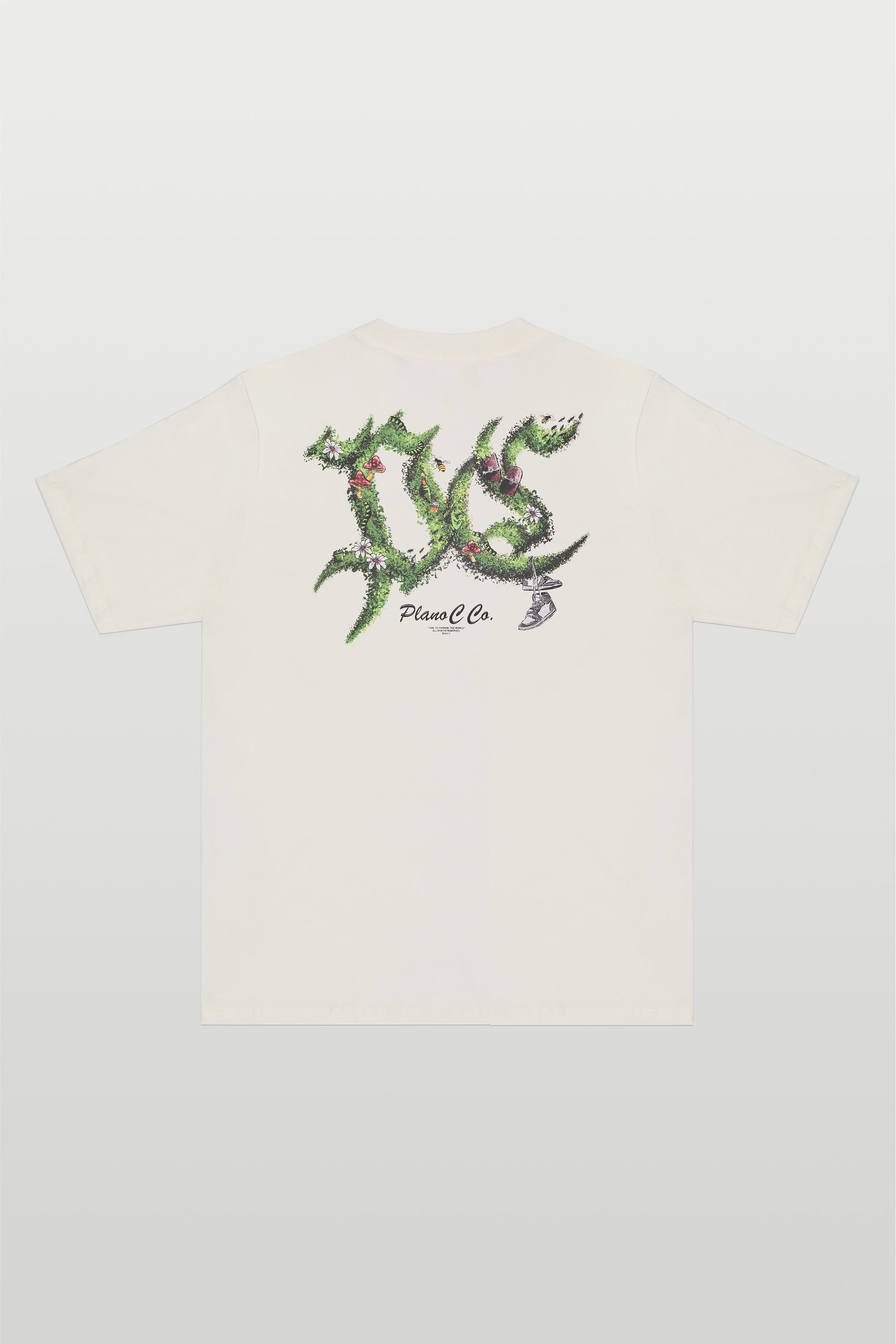 Estampa frontal lateral, e arte principal nas costas com composição botânica detalhada e assinatura Plano C.