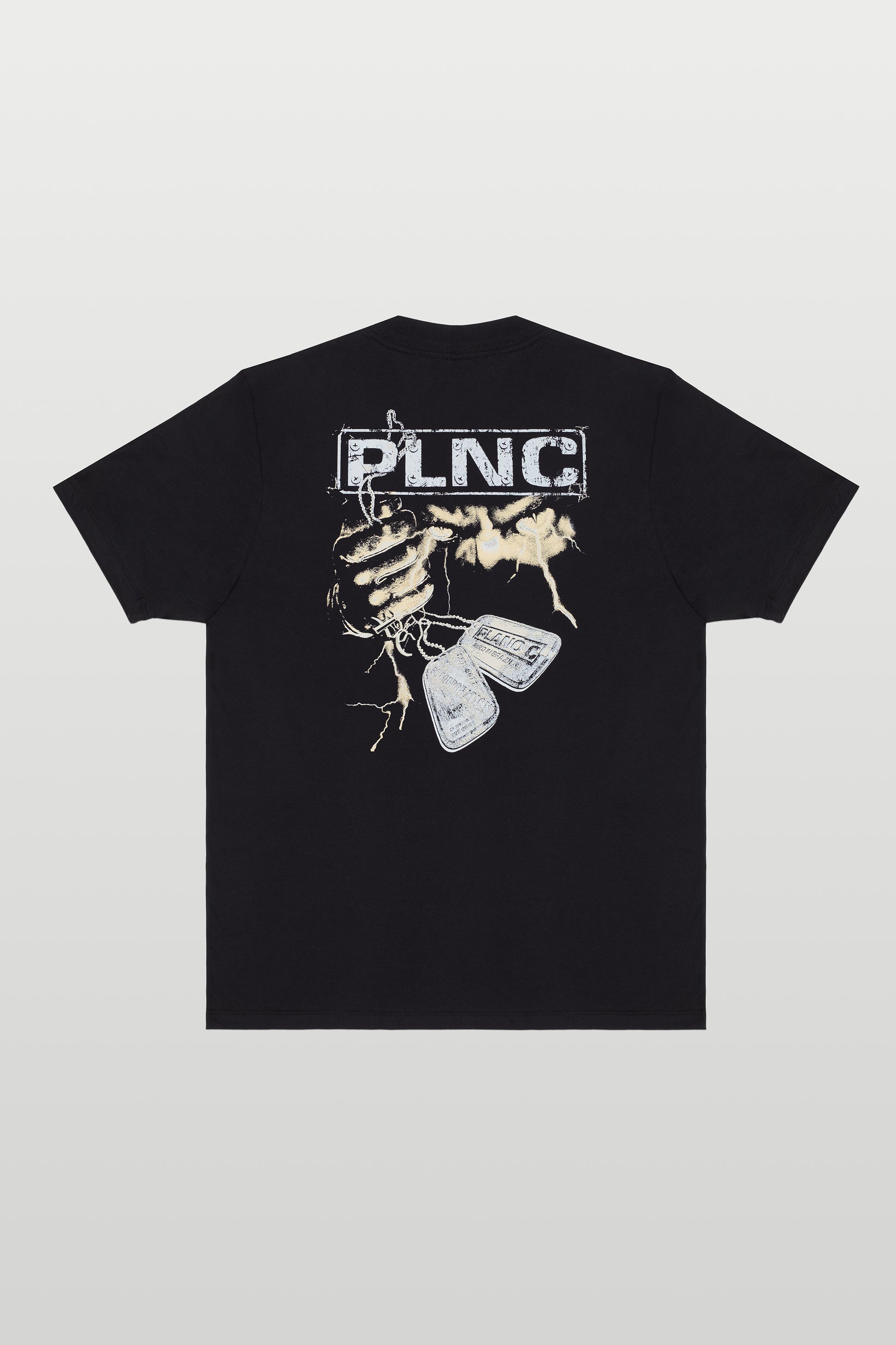 Estampa frontal lateral e estampa ampliada nas costas, trazendo o logo PLNC com composição gráfica e visual marcante. Acabamento interno em silk personalizado Plano C e etiqueta clip aplicada de forma discreta na lateral inferior.