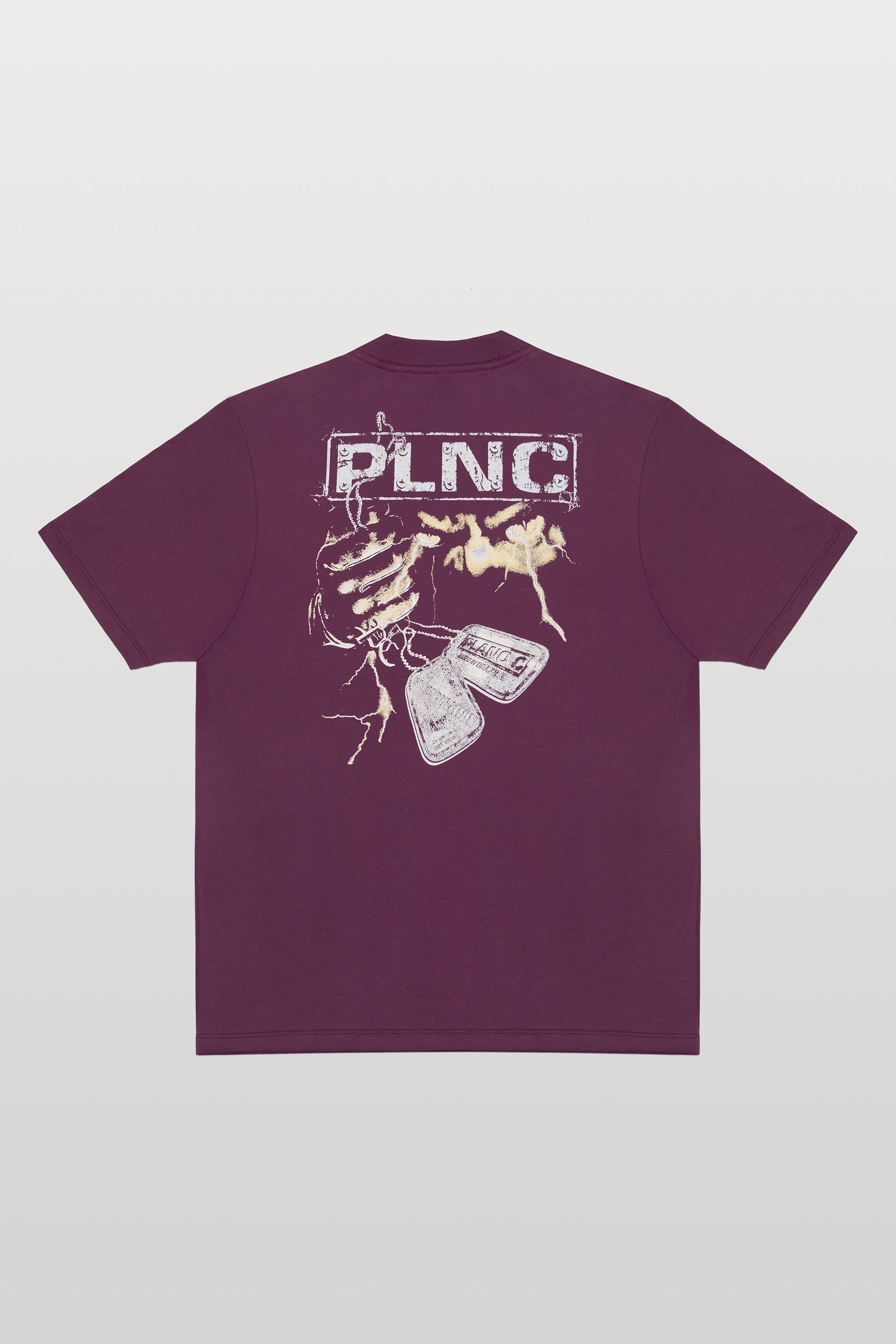 Estampa frontal lateral e estampa ampliada nas costas, trazendo o logo PLNC com composição gráfica e visual marcante. Acabamento interno em silk personalizado Plano C e etiqueta clip aplicada de forma discreta na lateral inferior.